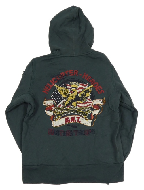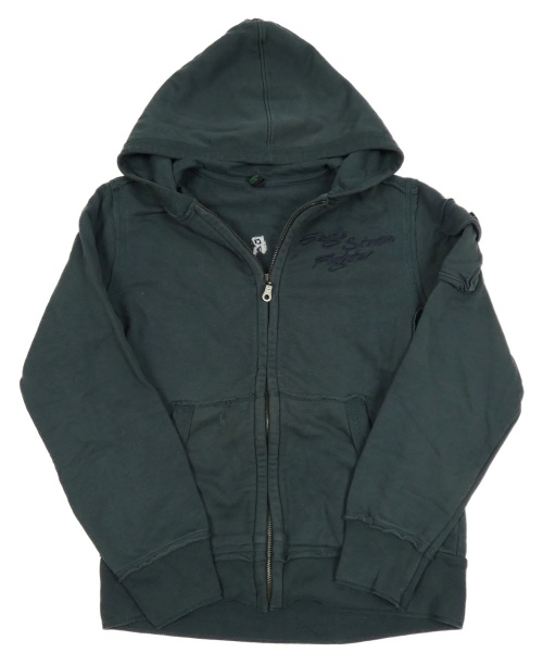 Tmavozelená prepínaci mikina s nášivkou a kapucňou Benetton