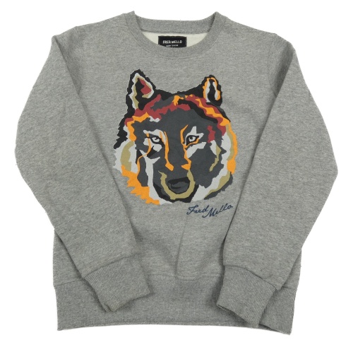 Sivá melírovaná mikina s vlkem