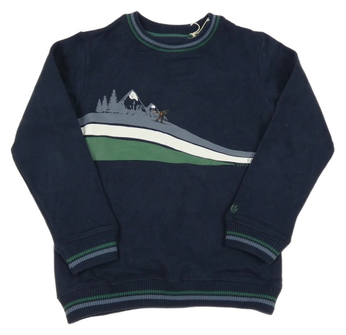 Tmavomodrá mikina s lyžařem a horami a lesem a pruhmi FAT FACE