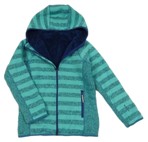 Zeleno-tmavomodrá pruhovaná pletená zateplená prepínaci mikina s kapucňou Jako-o