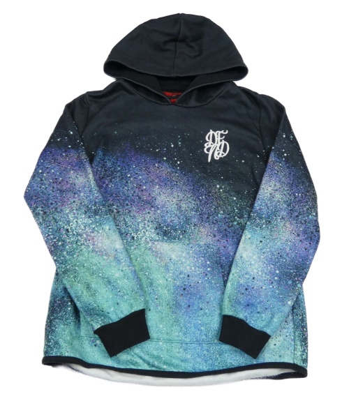 Čierno-zeleno-fialová mikina s nápisom a kapucňou