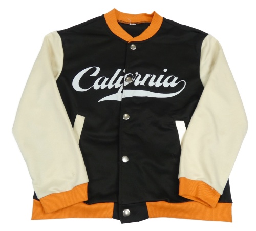 Čierno-béžovo-oramnžová baseballová mikina s nápisom