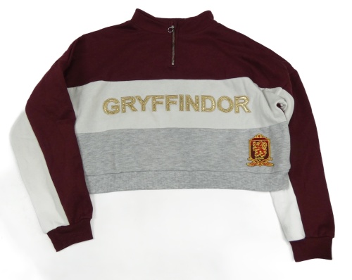 Vínovo-bielo-sivá crop mikina s nápisem Harry Potter