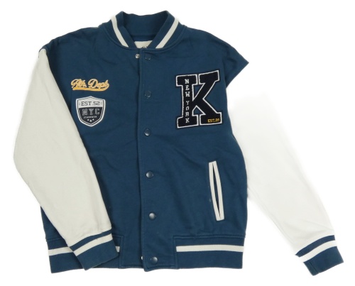 Modro-biela baseballová mikina s nášivkami C&A