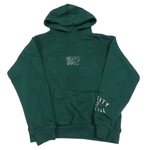 Tmavozelená mikina s nápisom a kapucňou dunnes