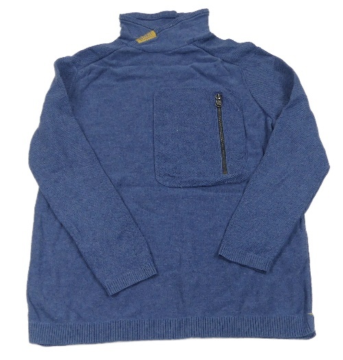 Tmavomodrý melírovaný sveter s vreckom a žebrováním a stojačikom ZARA