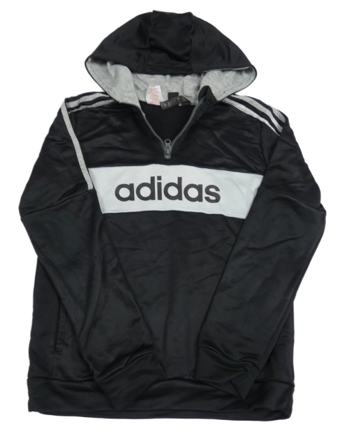 Čierno-bielo-sivá mikina s logom a kapucňou Adidas
