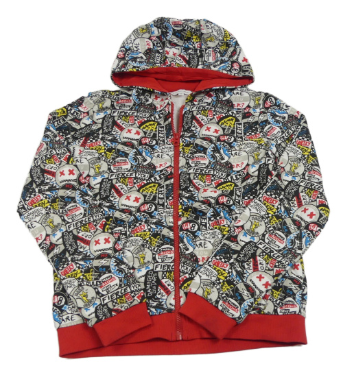 Farebná vzorovaná prepínaci mikina s nápismi a kapucňou Marc Jacob