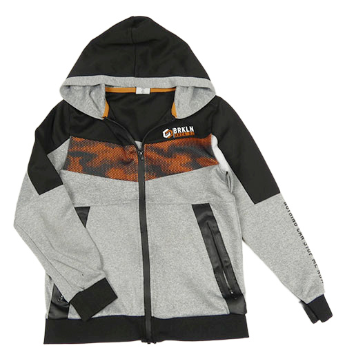 Sivo-čierna melírovaná prepínaci športová mikina s nápismi a vzorom a kapucňou Chapter Young