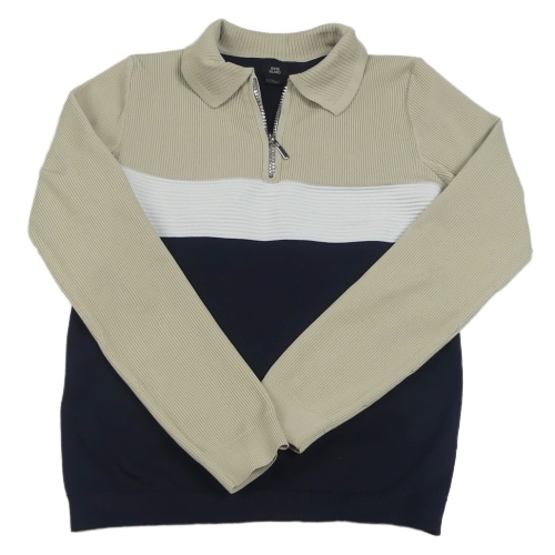 Béžovo-bielo-tmavomodrý rebrovaný sveter s golierikom River Island