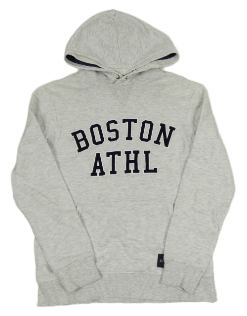 Svetlosivá melírovaná mikina s nápismi a nášivkou a vreckom a kapucňou H&M