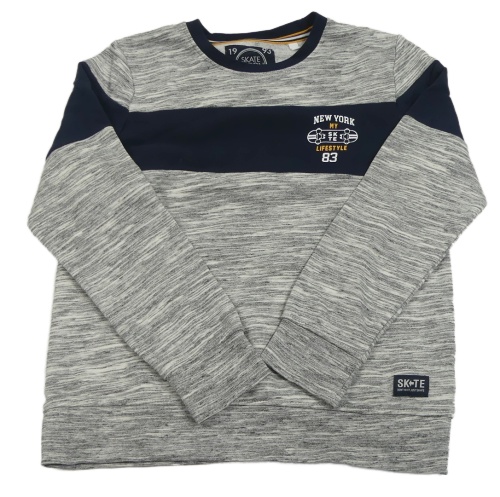 Čierno-bielo-tmavomodrá melírovaná mikina so skateboardom a nápisom C&A