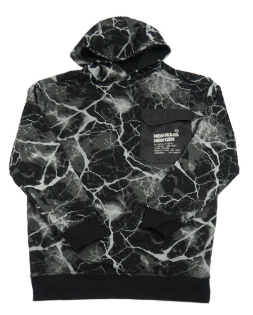 Čierno-sivá batikovaná mikina s vreckom s nápismi a kapucňou George