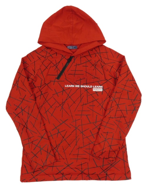 Červeno-čierna vzorovaná ľahká mikina s kapucňou