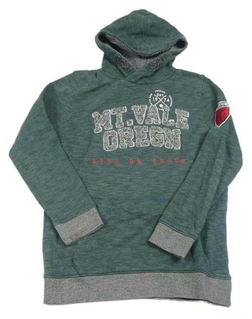 Olivovošedo-čierna melírovaná mikina s nápismi a vreckom a nášivkou a kapucňou C&A