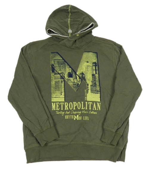 Khaki mikina s písmenkom s městem a nápismi a kapucňou TOM TAILOR