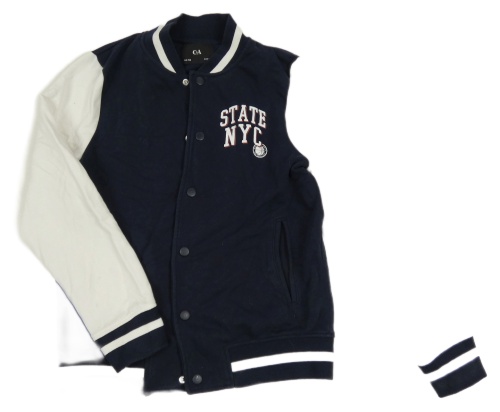 Tmavomodro-biela baseballová mikina s nápisom C&A
