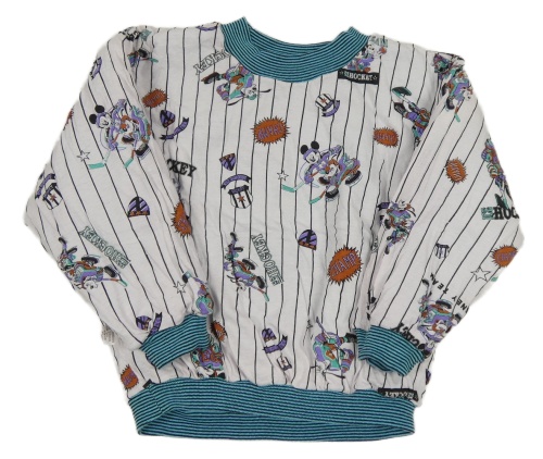 Biela pruhovaná zateplená obojstranná mikina s Mickeym