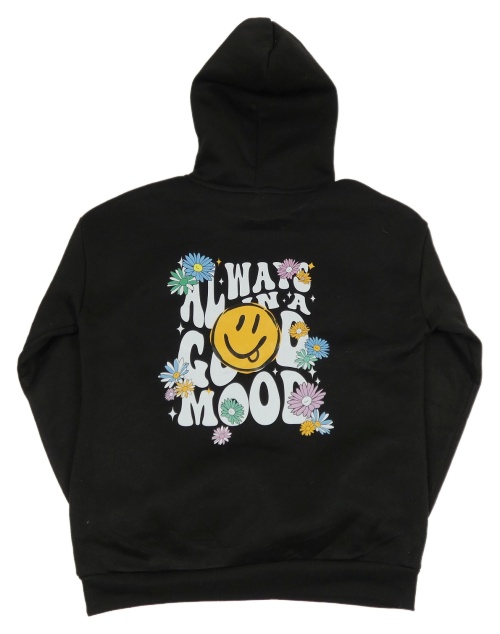 Čierna mikina s nápisom a smajlíkom a kapucňou Shein