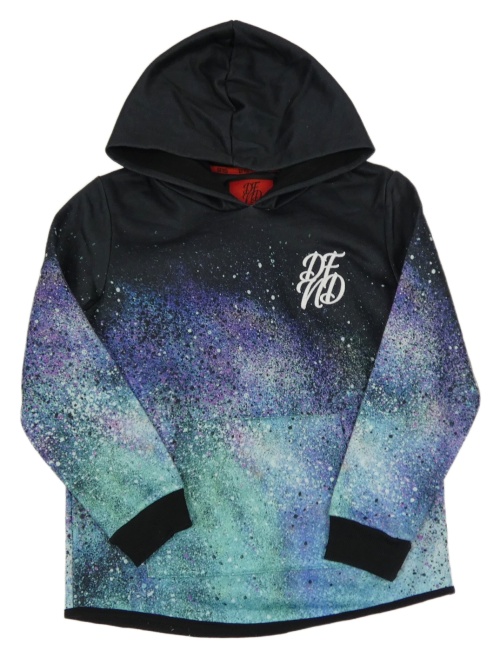 Čierno-fialovo-zeleno-modrá vzorovaná mikina s výšivkou a kapucňou DFND