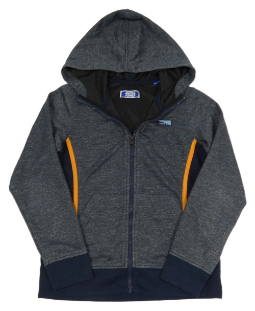 Tmavomodrá melírovaná prepínaci mikina s nášivkou a kapucňou JACK&JONES