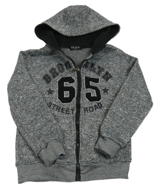 Tmavosivá melírovaná pletená prepínaci mikina s číslom a kapucňou