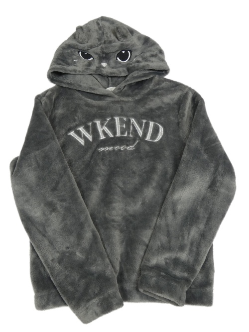 Sivá chlpatá mikina s nápisom a kapucňou H&M