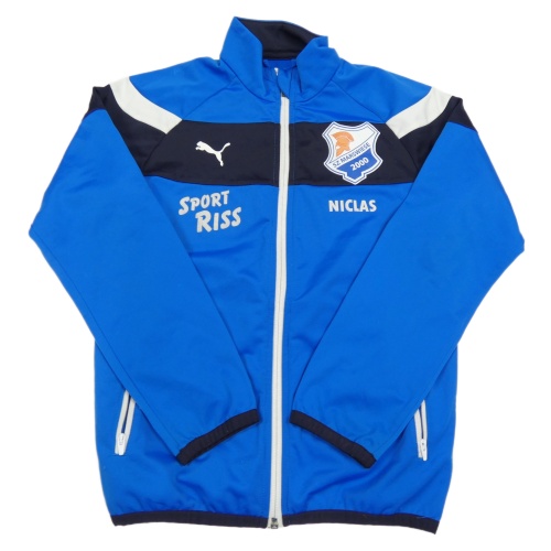 Modro-tmavomodro-biela prepínaci športová mikina s potlačou Puma