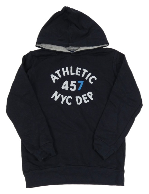 Tmavomodrá mikina s nápisom s číslom a kapucňou