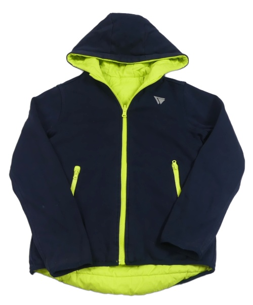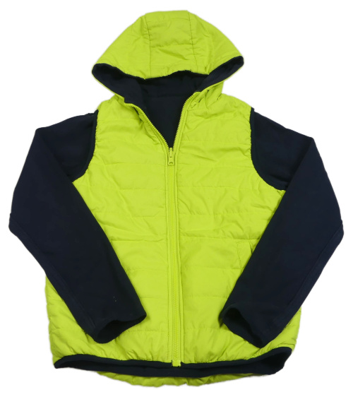 Zeleno-tmavomodrá šusťákovo-tepláková zateplená obojstranná bunda s kapucňou TCM