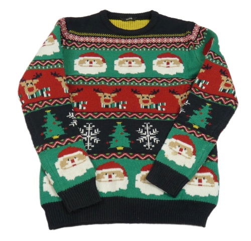 Tmavozeleno/červeno-čierny pletený vianočný sveter so Santy a sobmi George