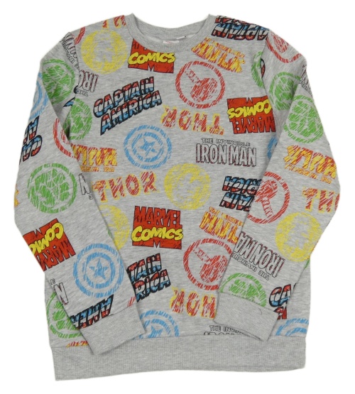 Nové - sivá melírovaná mikina s nápismi a znaky superhrdinů PRIMARK