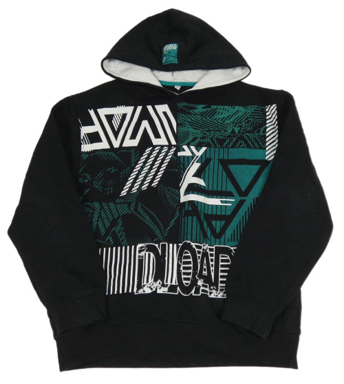 Čierno-modrozelená mikina s potlačou a nápismi a kapucňou C&A