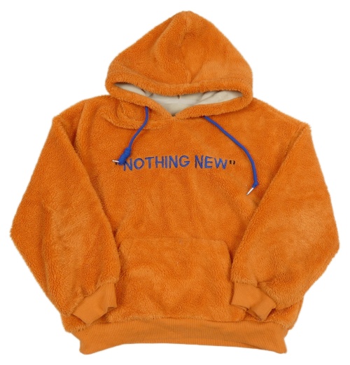 Oranžová huňatá tepláková mikina s nápisom a kapucňou