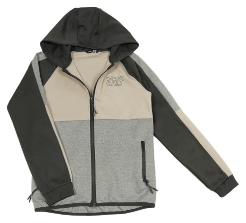 Sivo-světlebéžovo-tmavosivá melírovaná prepínaci športová mikina s nápismi a kapucňou PEP&CO