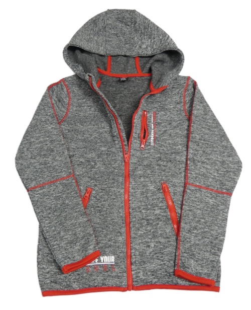 Sivá melírovaná prepínaci pletená mikina s červeným šitím a kapucňou Y.F.K.