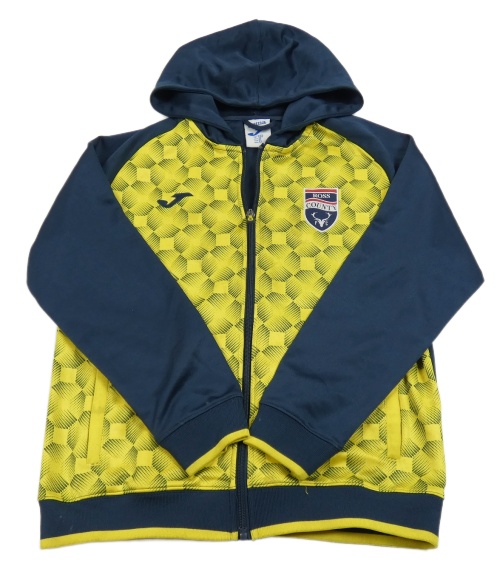Tmavomodro-žltá prepínaci športová mikina s nášivkou a kapucňou Joma