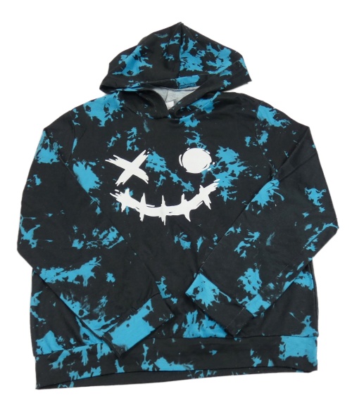 Čierno-modrá batikovaná mikina s obrázkom a kapucňou