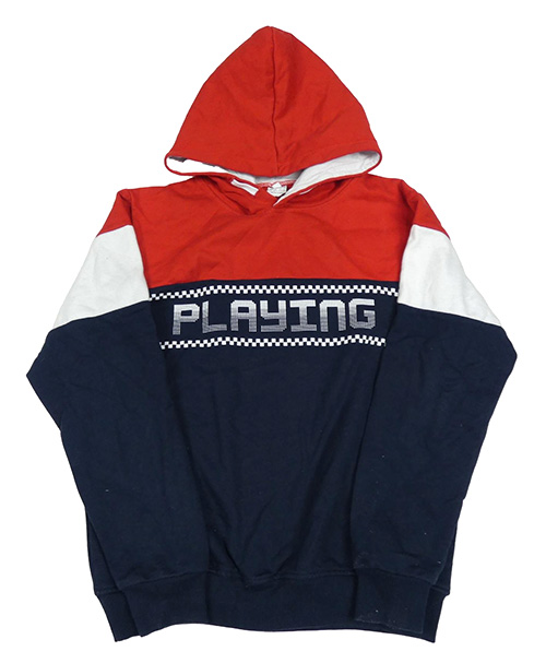 Červeno-tmavomodro-biela mikina s nápisom a kapucňou
