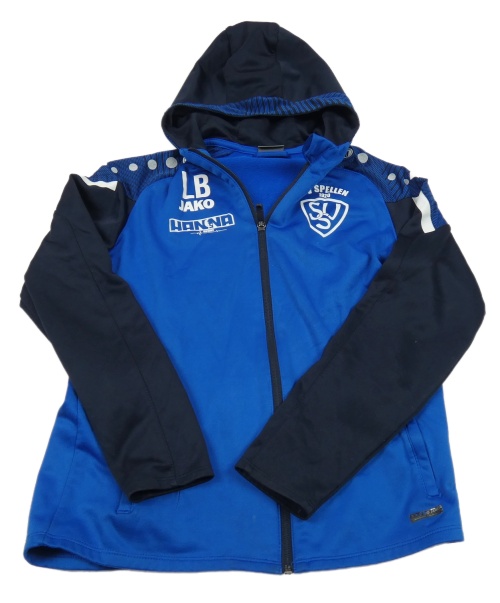 Safírovo-tmavomodrá thermo prepínaci futbalová mikina so znakom a kapucňou JAKO