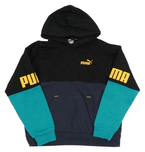 Čierno-tmavomodro-modrozelená mikina s logy a vreckom a kapucňou PUMA