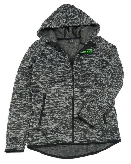 Čierno-biela melírovaná pletená prepínaci mikina s nápisom a kapucňou Y.F.K.