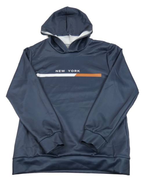 Tmavomodrošedá športová mikina s nápisom a kapucňou