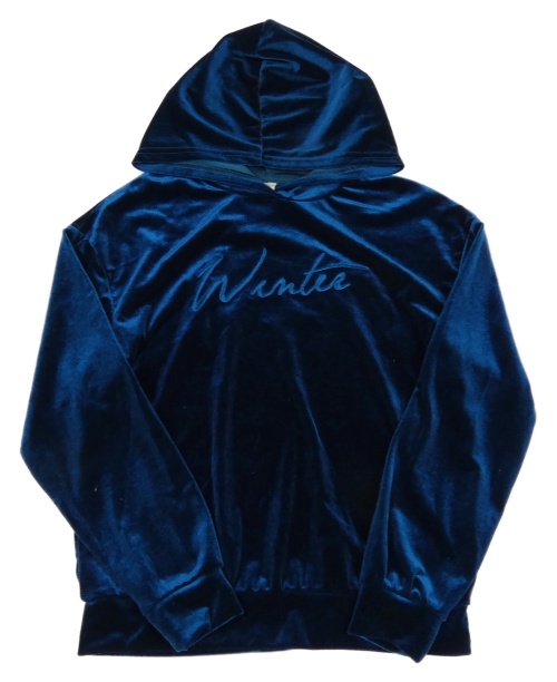 Tmavomodrá zamatová mikina s nápisom a kapucňou Shein
