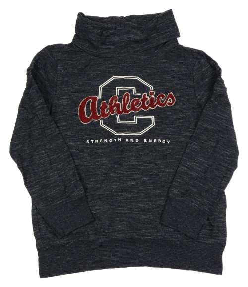 Tmavomodrá melírovaná mikina s písmenkom a nápismi a komínovým golierom YIGGA