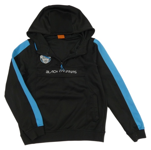 Čierna športová mikina s modrým pruhom a kapucňou