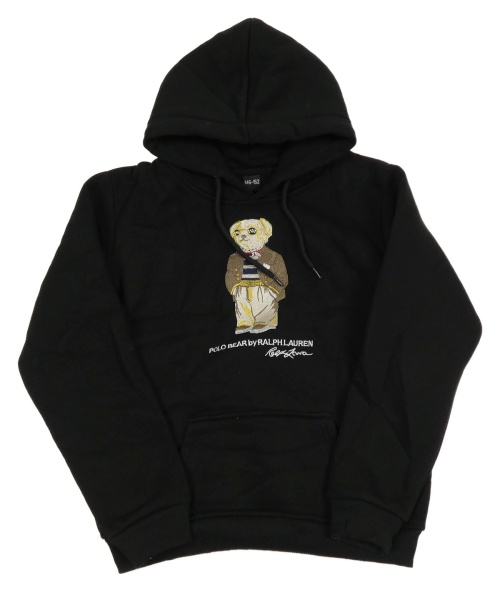Čierna tepláková mikina s medvedíkom a vreckom a kapucňou Ralph Lauren