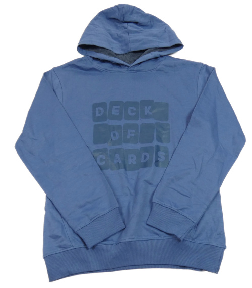 Modrá mikina s nápisom a kapucňou