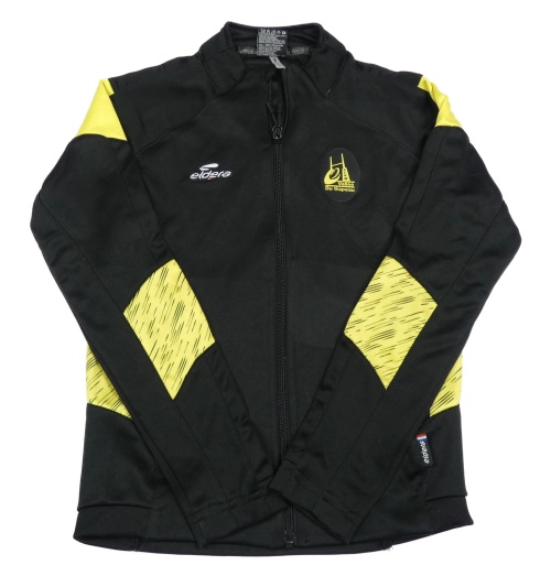 Čierno-žltá športová prepínaci mikina s nášivkami
