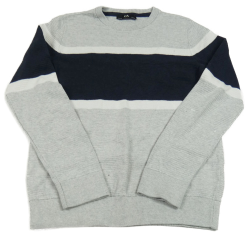 Sivo-bielo-tmavomodrý melírovaný rebrovaný sveter s pruhmi C&A